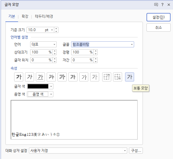 한글2020 글자모양 보통이란 도구상자 맨 끝에 있는겁니다.